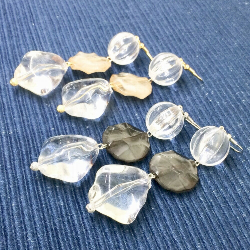 商 品 情 報*************** ■色 [1]ビーズ=クリア・ベージュ ポスト部分・その他パーツ=ゴールド [2]クリア・ブラック ポスト部分・その他パーツ=シルバー (注意!モニターの発色によって実際の物と異なる場合があります) ■サイズ 重さ=約29g 長さ=約10.8cm ■ポスト 基本ポスト=金属アレルギー対応サージカルステンレスフック サージカルステンレスは医療用メスにも使われている安心な金属です ポストの変更指定がない場合はサージカルステンレスフックとなります サージカルステンレスピン、純チタン、樹脂、ノンホール(樹脂)、イヤリング(ニッケルフリー)などへのポスト変更も無料です 変更希望の場合はポスト一覧画像から番号などでご指定下さい (注意!フックをピンに変更すると短く、ピンをフックに変更すると長くなります) ■メール便送料無料について メール便送料無料はメール便選択時のみ有効となります 宅配便を選択の場合はご注文後に有料となりますのでご注意ください 複数のご注文商品の中に『メール便送料無料』の商品が含まれている場合は、同梱配送商品も併せてメール便送料無料とさせていただきます ■質問などは、メールをご活用下さい ayulry@shop.rakuten.co.jp メール送信時はお名前を記入ください 土・日・祝日を除く営業日にて順次返信しております形の違う大きなクリアビーズを3個つなげた個性的なロングピアスです ゴールドはクリアとベージュで、シルバーはクリアとブラックで合わせました ■金属アレルギー対応のピアス■ 医療用のメスにも使われている安心な金属、サージカルステンレス316L使用 その他の金属アレルギー対応ポストへの変更も無料 ポストの変更指定がない場合はサージカルステンレスフックとなります