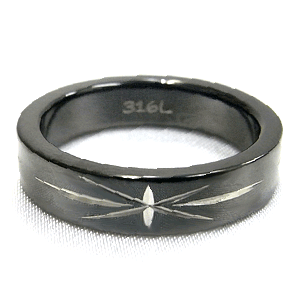シンプルなキレイめジュエリー!黒の平うちリングに彫りが入って輝く!! その他 ◆低アレルゲンのステンレスですが、全ての方にアレルギーが起きないわけではございません。