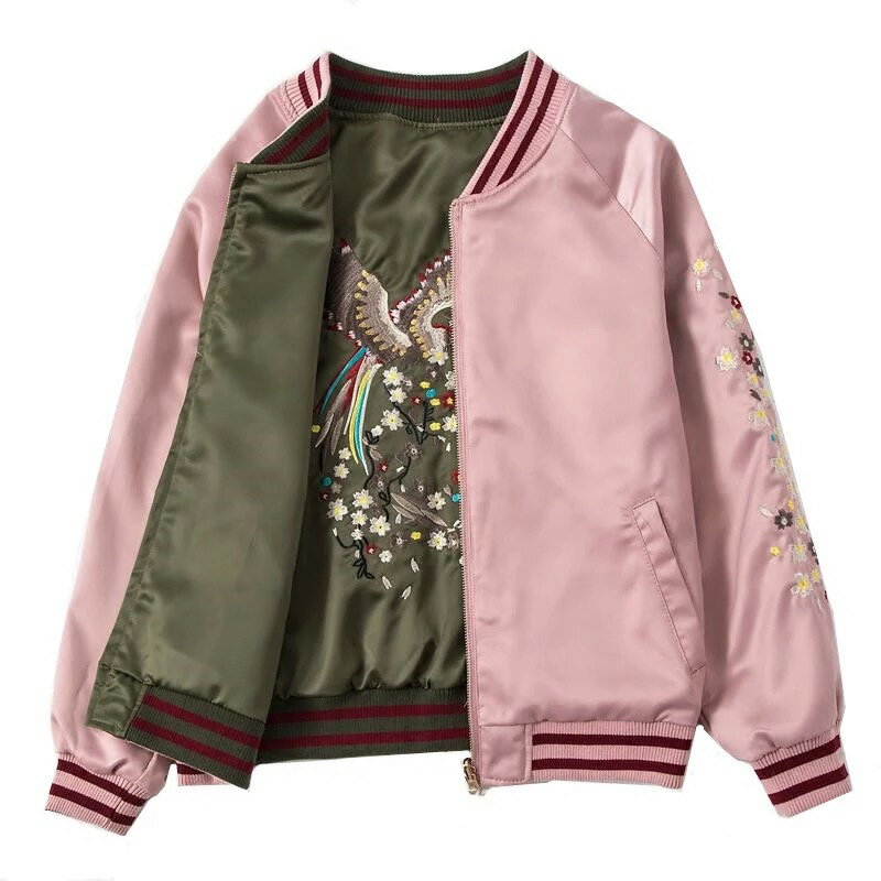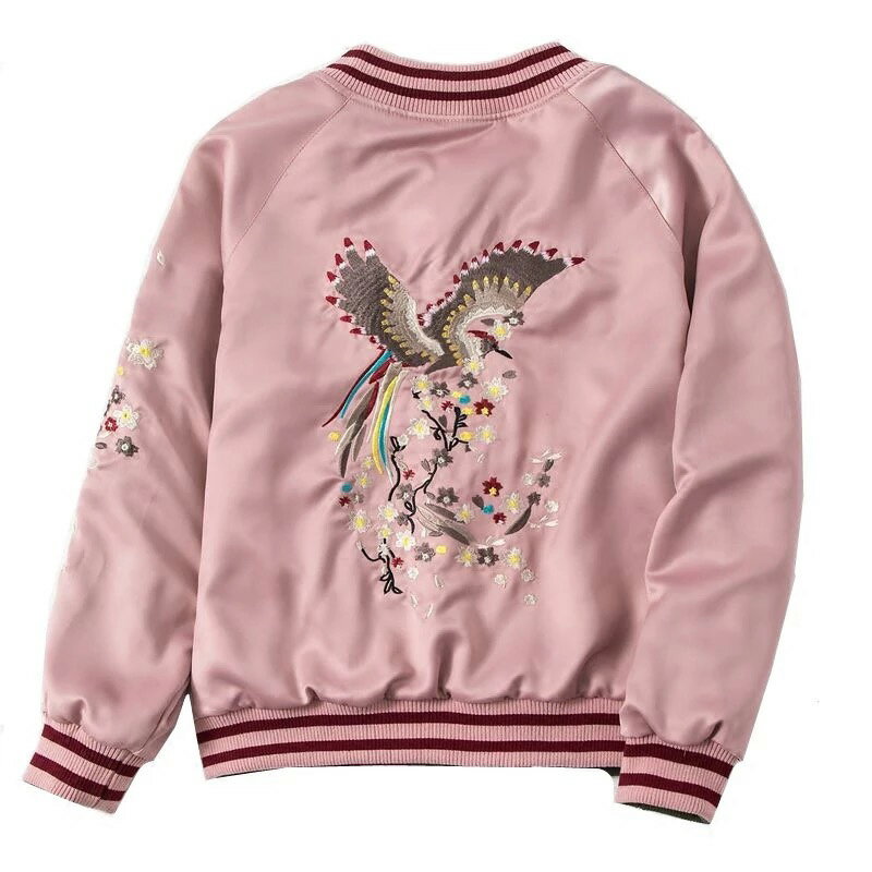 正面鳳凰の刺繍が目を惹く、2WAY仕様の男女兼用スカジャンです。